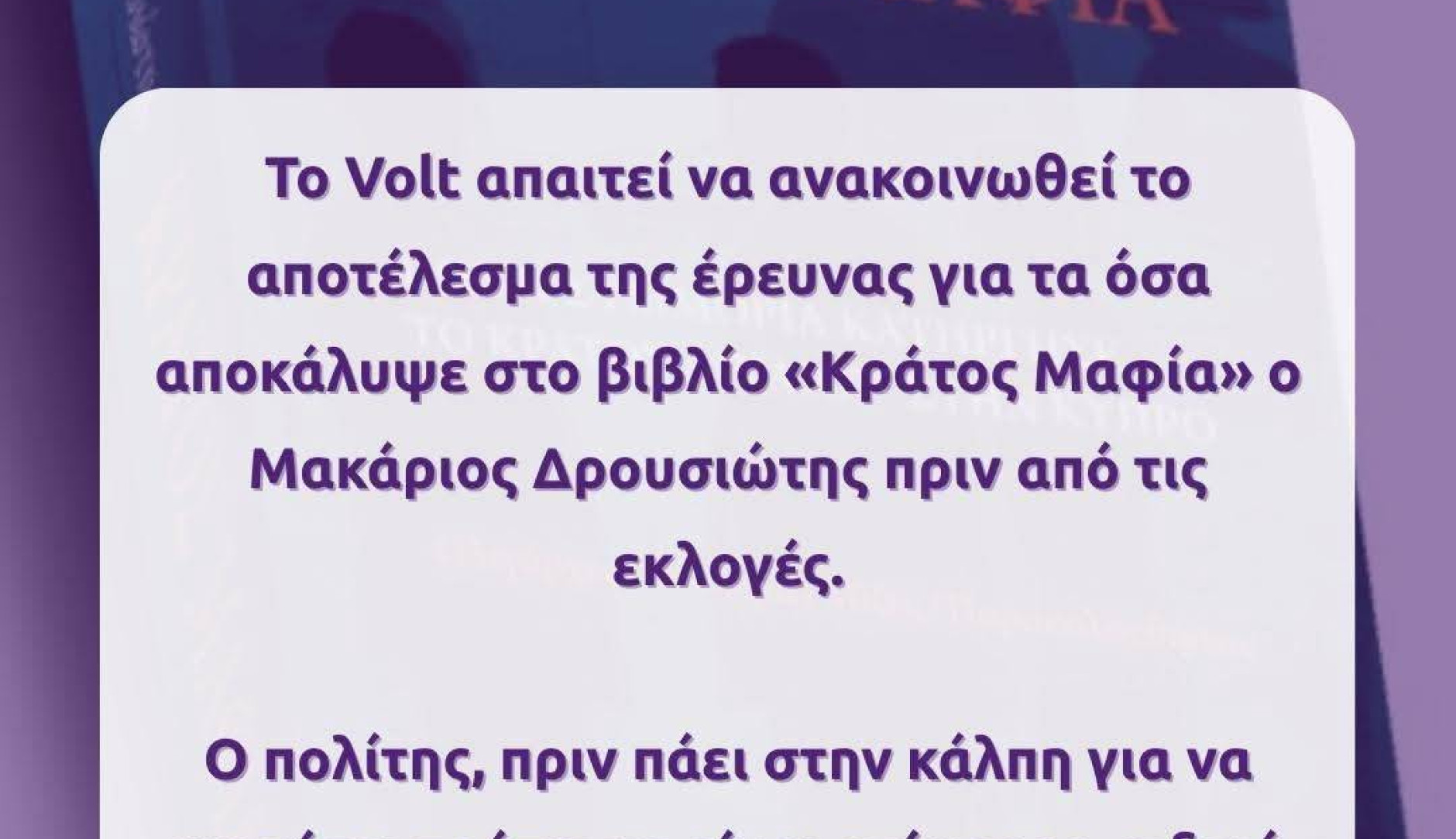 Το Volt απαιτεί να ανακοινωθεί το αποτέλεσμα της έρευνας, όποιο κι αν είναι αυτό, πριν από τις εκλογές.